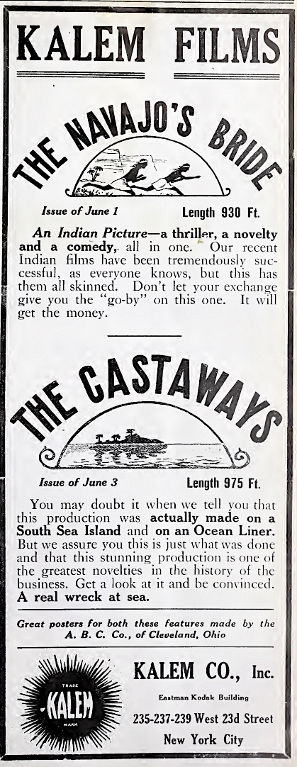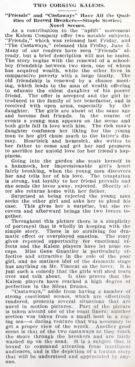 | La presse The Film Index, 4 juin 1910, p. 5 ![]() précédent suite |