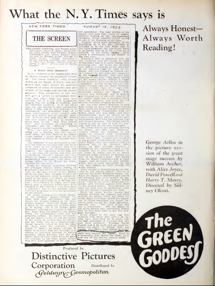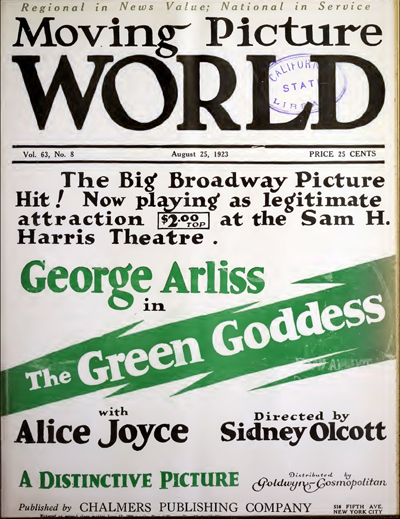 The Green Goddess fait la une de Moving Picture World, 25 août 1923.