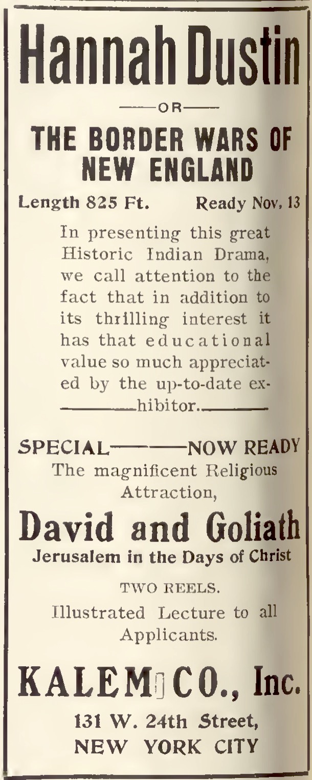 ![]() Publicité parue dans The Show World, le 7 novembre 1908, p. 14. |