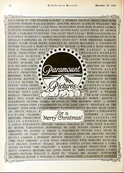 La presse Pleine page de publicité parue dans Motion Picture News, 23 décembre 1923, p 2834