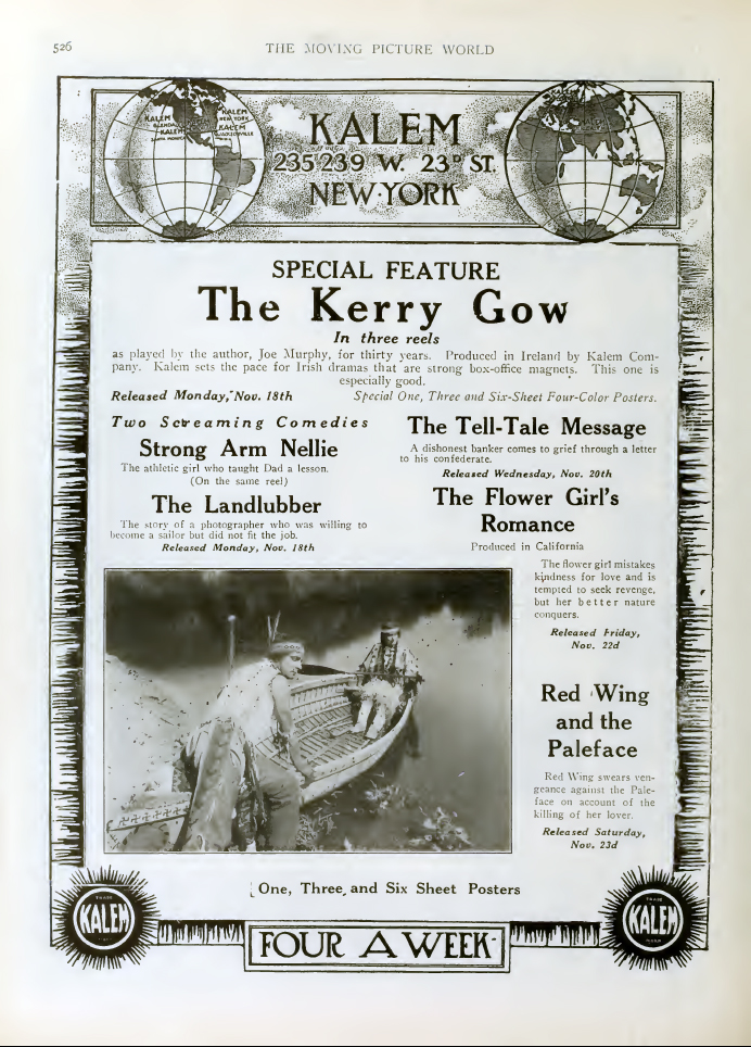 Page de publicité parue dans The Moving Picture World, le 9 novembre 1912, p 526. J.P. McGowan, Sidney