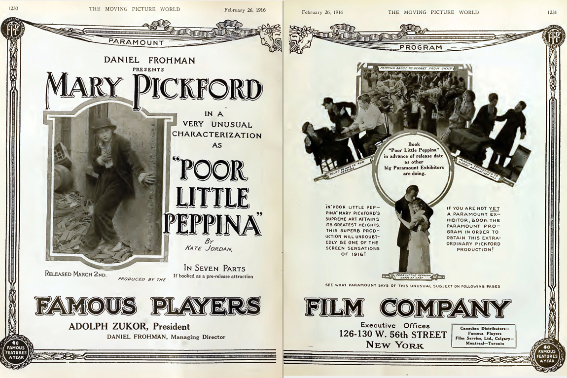 La presse Sextuple page de publicité parue dans The Moving Picture World, 26 février 1916, pp 1230-1235