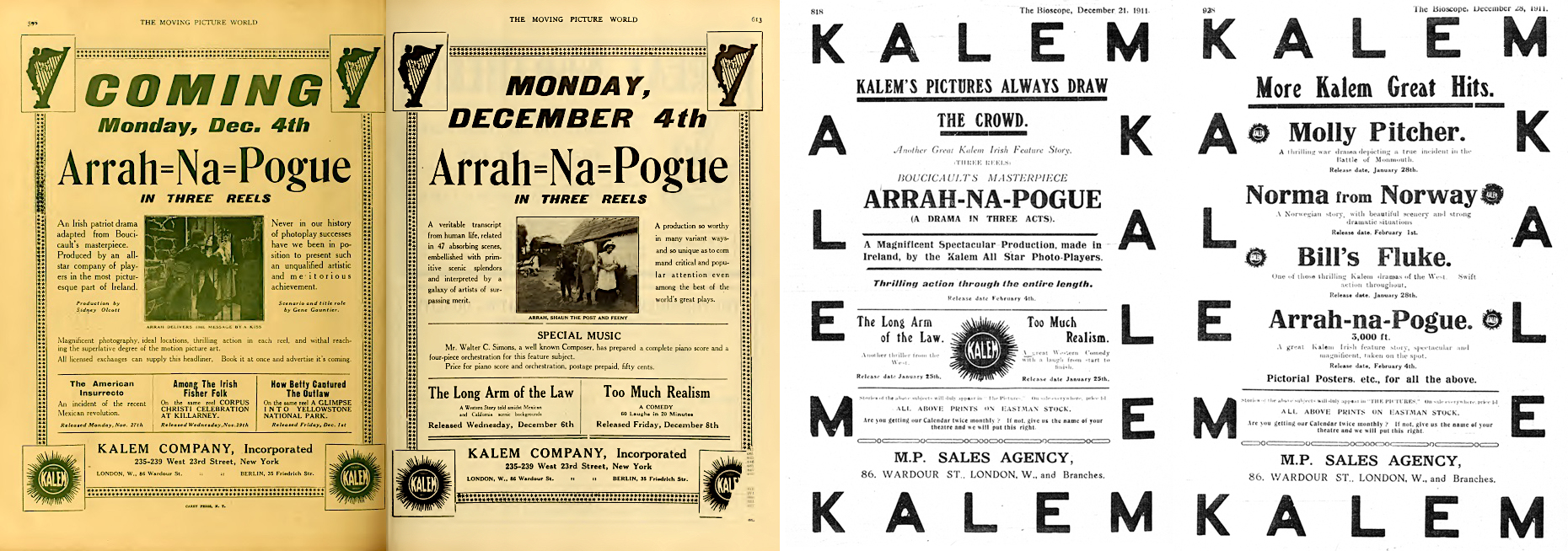 La presse The Moving Picture World, 18 novembre 1911, p 596 ; 25 novembre, p. 613 ; The Bioscope, 21 décembre 1911, p. 818 ; 28 décembre 1911, p. 928
