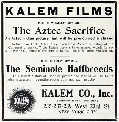 Publicité parue dans The Moving Picture World, Vol. 6, p. 796. |