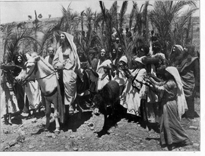 For From the Manger to the Cross, Sidney Olcott also rotates in the holy city. The arrival of Jesus on Palm Sunday, from the Mount of Olives, accompanied by the multitude.