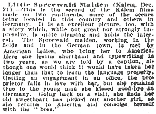 La presse The New York Dramatic Mirror, 28 décembre 1910, p. 29