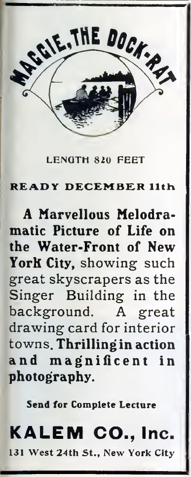 Publicité parue dans The Moving Pïcture World, le 5 décembre 1908, p. 459.