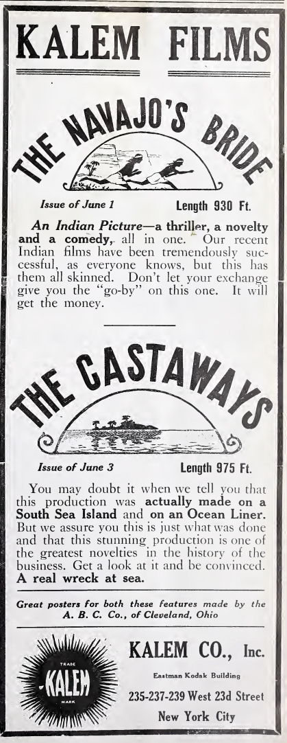 ![]() Publicité parue dans The Film Index, 28 mai 1910, p. 21. |