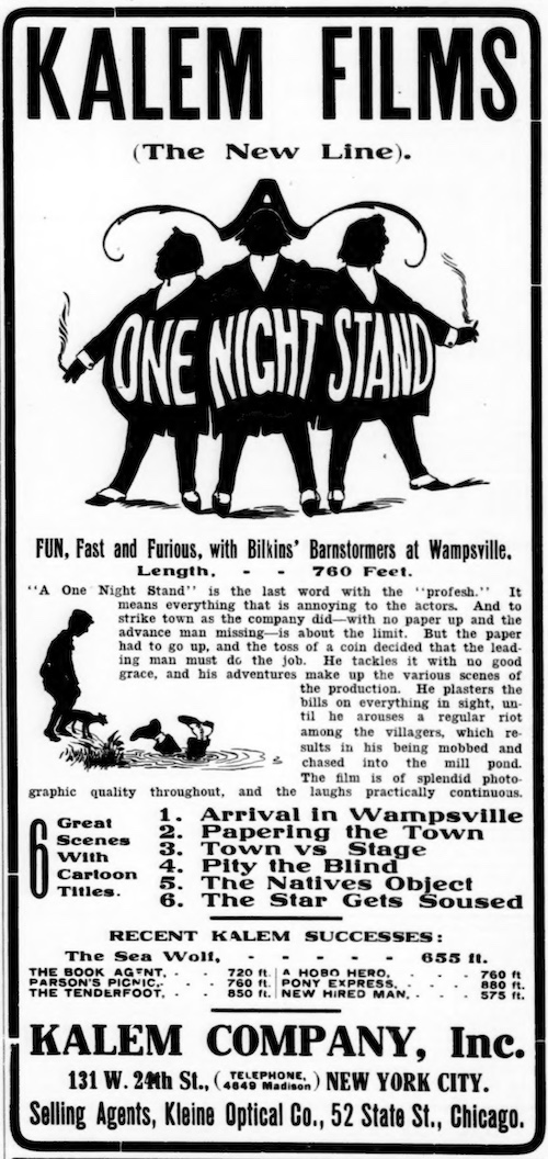 ![]() Publicité parue dans The Billboard, le 14 août 1907, p. 16. |