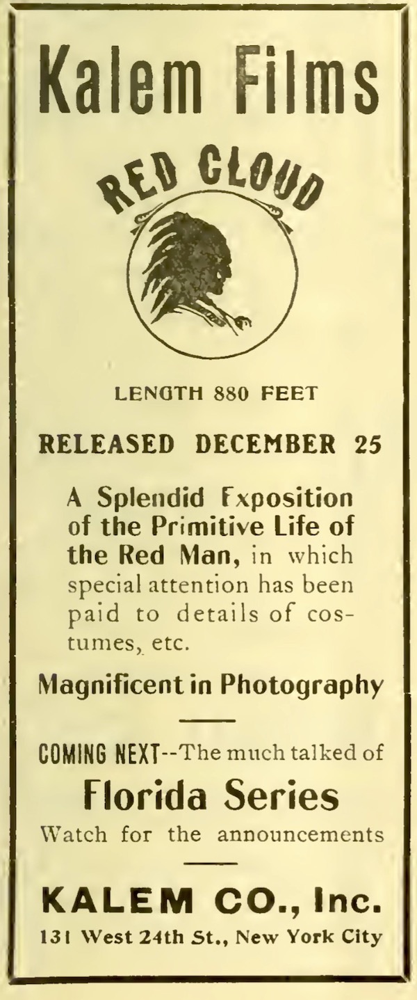 ![]() Publicité parue dans The Moving Picture World, le 19 décembre 1908, p. 509. |